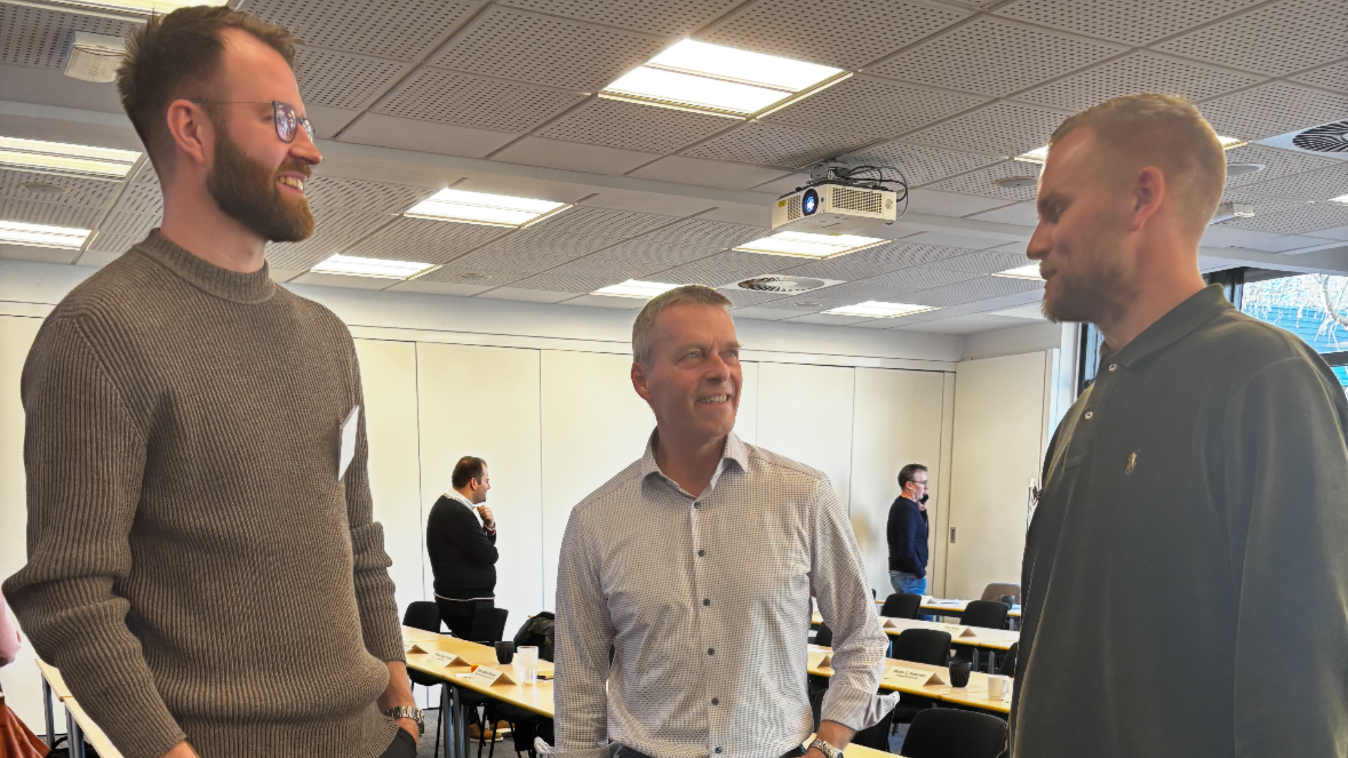 Peter Hansgaard (tv), Lars Reimer og Steffen Steffensen (th) drøfter udfordringen med store mængder data.