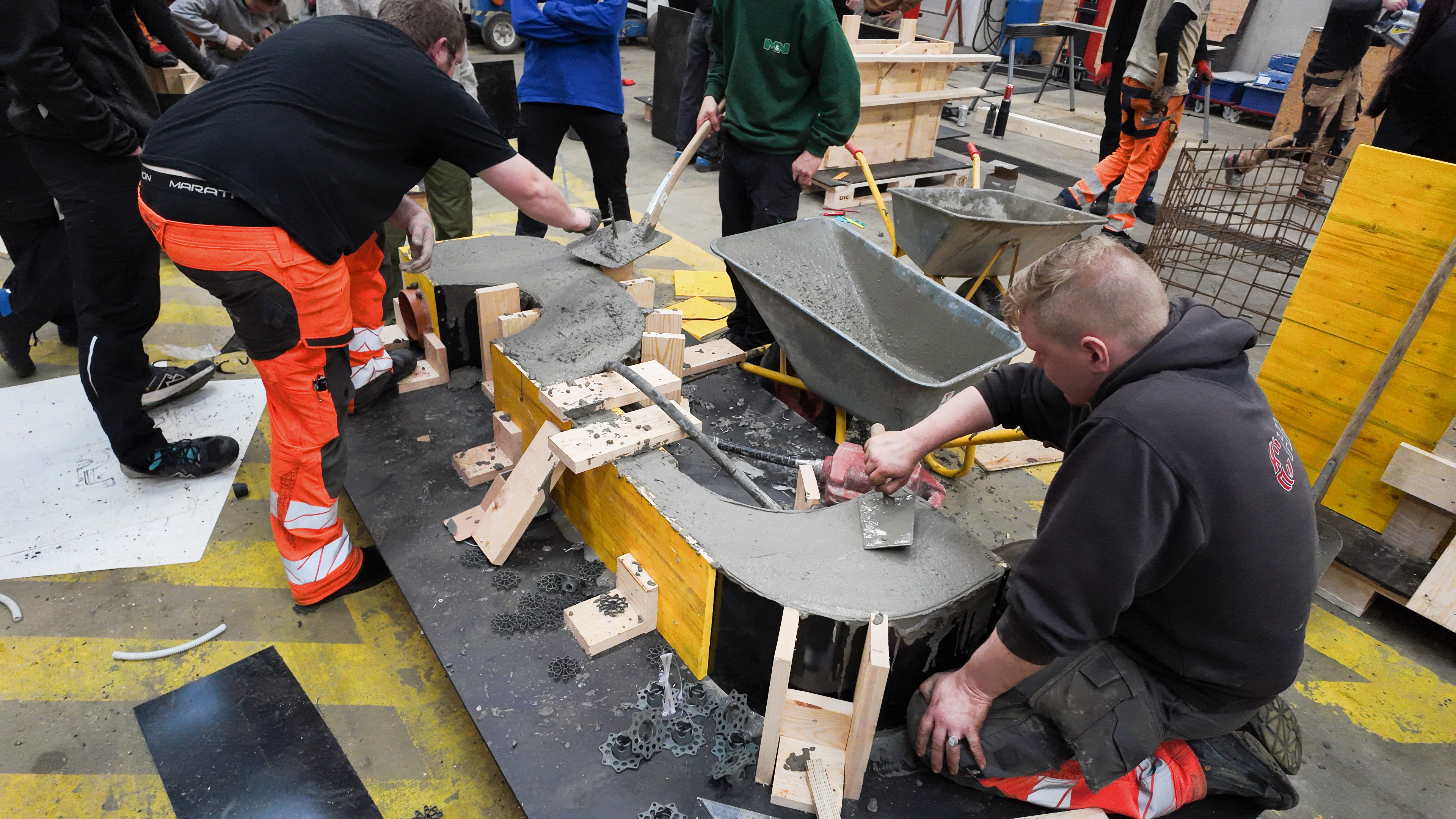 Foto: Henrik MalmgreenI år fandt man repræsentanter fra blandt andre entreprenørvirksomheden A. Enggaard, Gandrup Element samt Sweco Architects i dommerpanelet, og ifølge faglærer fra Bygge og Anlæg ved AMU Nordjylland, Torben Dybdahl Jensen, er det en udvikling, man hilser velkommen. Betonworkshop handler nemlig om meget mere end blot kreativitet og det at fylde en form med beton. Betonworkshop handler frem form alt om samarbejde og proces på tværs af faggrænser.