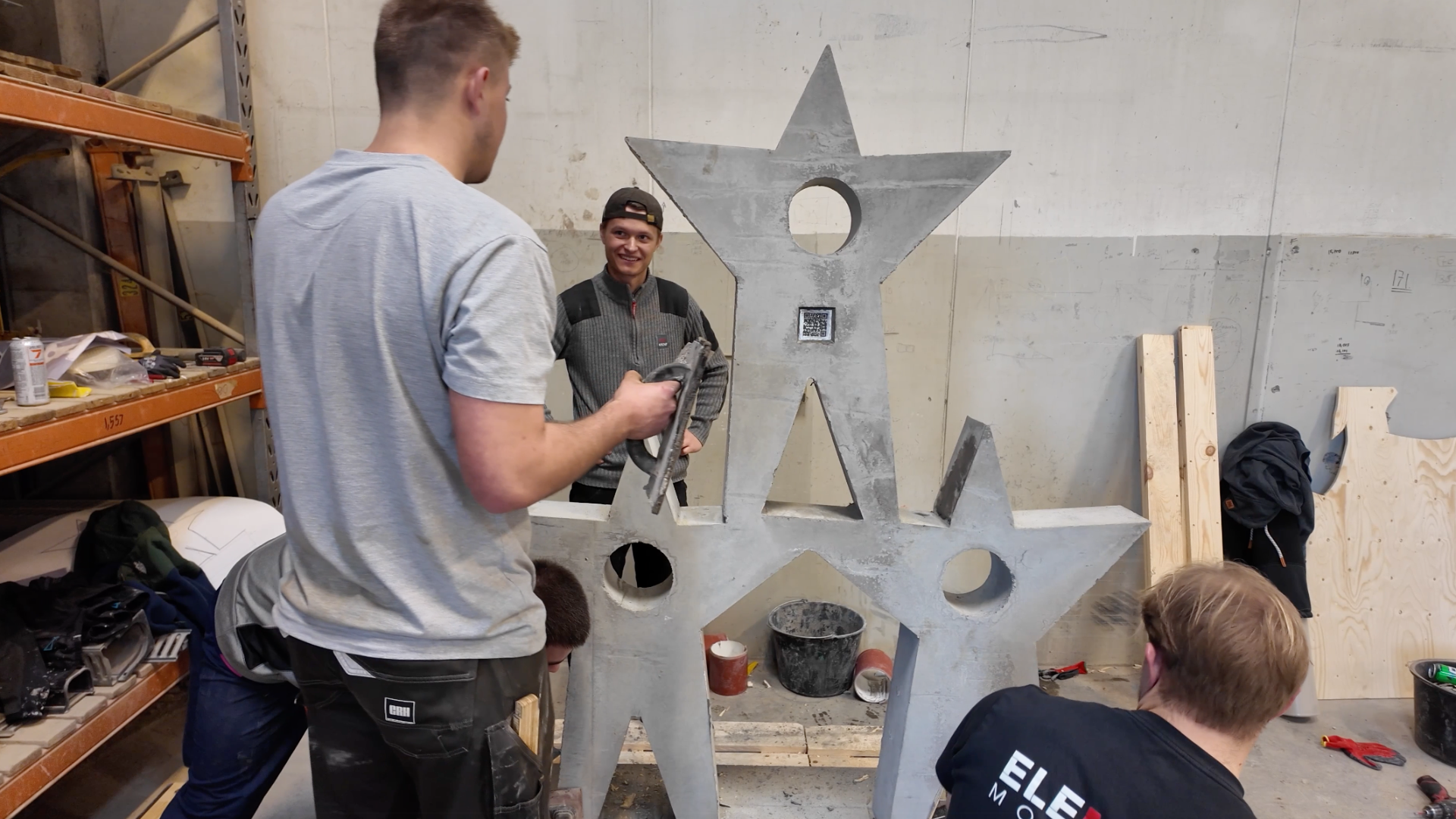 De betonelementer, der er blevet skabt under Betonworkshop 2025 kommer til at stå ved Gigantium i Aalborg. Årets temaer var Sport, Fællesskab samt Vand, og en repræsentant fra Gigantium deltog i hver af de tre dommerkomiteer. Herfra glæder man sig til at få værkerne ud at stå på området og på den måde være med til at gøre det til en endnu mere spændende del af lokalsamfundet. Her ses vinderelementet i kategorien Fællesskab.