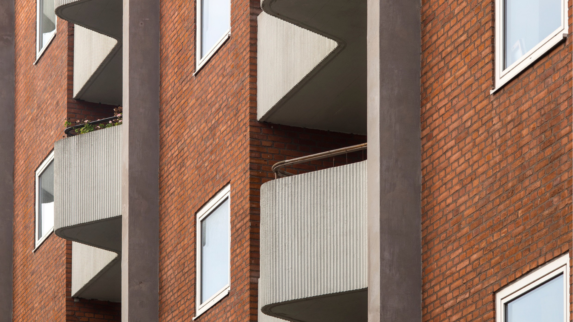 Foto: Mathilde BechFælles for projekterne er et ønske om at bevare og udvikle det eksisterende byggeri til gavn for klimaet, arkitekturen og ikke mindst beboerne. De er delt op i fire temaer, hvor ”Dristig Beton” er det ene, og her er der fokus på at reparere samt renovere betonaltaner samt trapper i stedet for at udskifte dem. I alt tre projekter indgår i dette tema, nemlig Finsens Have på Frederiksberg, Brøndbyparken i Brøndby samt Hammershøj i Helsingør.