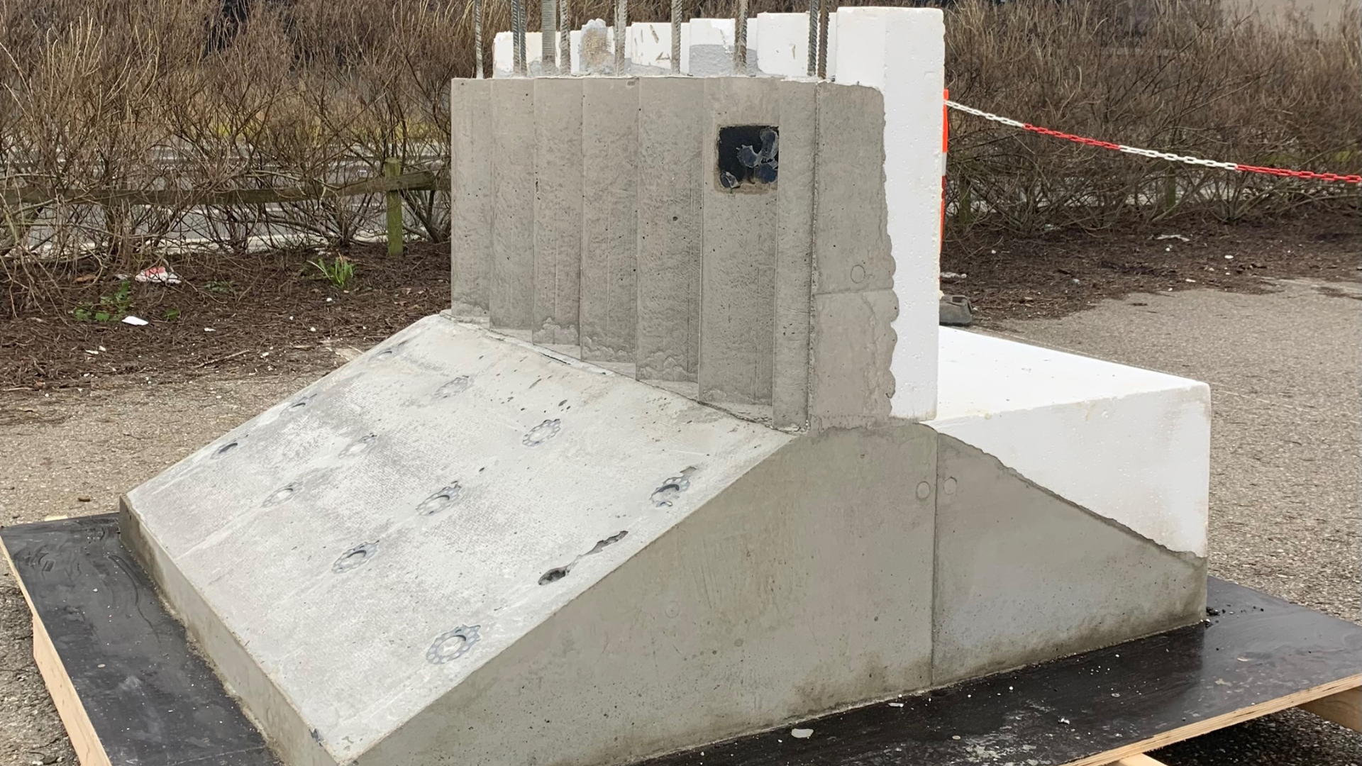 Det står hos Dan-Element i Skive og venter blot på at blive sat i jorden, hvilket kommer til at ske som en test i samarbejde med entreprenørvirksomheden NCC, inden konceptet med optimerede, præfabrikerede stribefundamenter tages i brug i forbindelse med konkrete byggeprojekter. Testen vil formentlig finde sted i løbet af foråret, og de involverede parter har store forventninger til fremtiden for den slags fundamenter.