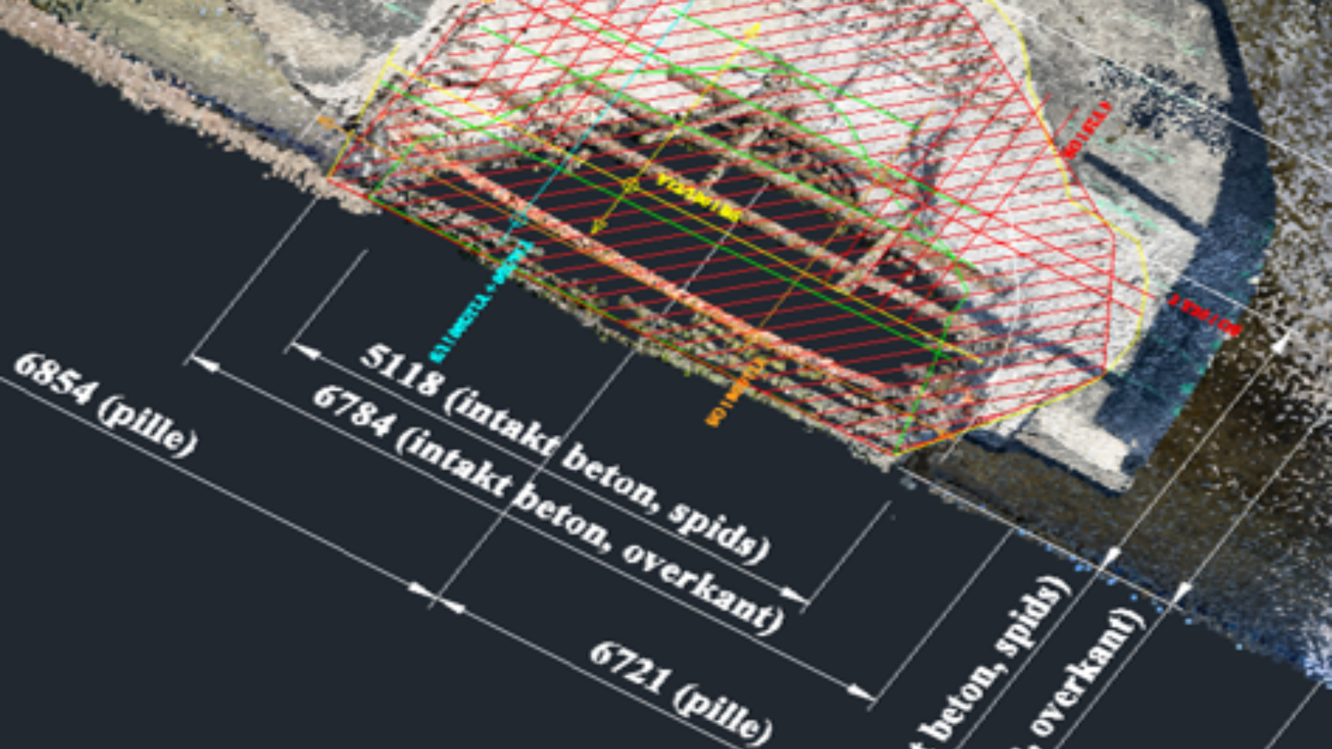Skaden på broen blev 3D-scannet med en iPhone og en LiDAR scanningsapp. Punktskyen blev derefter importeret i AutoCAD.